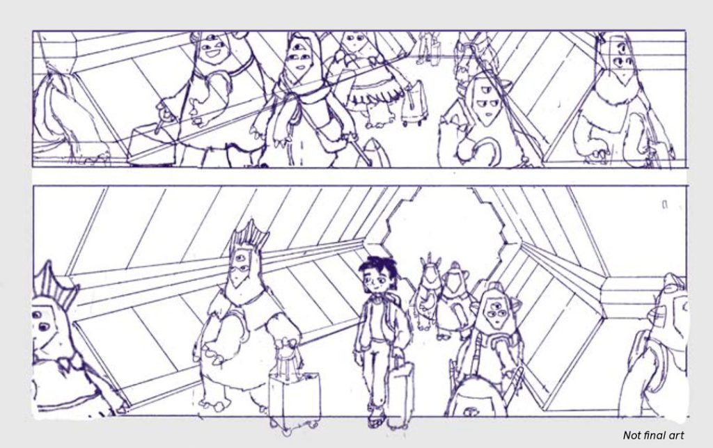 From one journey to another, Xocolatl: Language in an Alien Spacetime’s grand interstellar adventure begins like any trip does – in an immigration interrogation room. Written by author and translator Adan Jimenez and illustrated by Josephine Tan with a November release, this graphic novel follows Dani, a writer, artist, and translator from México, as they travel to the planet Eyi to start a new chapter of their life. The endless string of questions by bewildered Eyi immigration officials, peppered with misconceptions about Human culture, ultimately lead Dani down a rabbit hole where they recollect their eventful life against the backdrop of interplanetary geopolitics and unpack what family, gender, history, and art really mean. Equal parts absurdist and incisive, Xocolatl is a sharp critique of how stories shape our identity and what we lose and gain in translation.